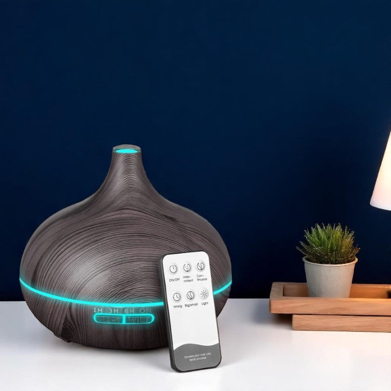 Viene en una presentación elegante, incluye control remoto, adaptador y manual. Solo debes añadir el aceite esencial de tu preferencia (no incluido) y empezar a disfrutar.